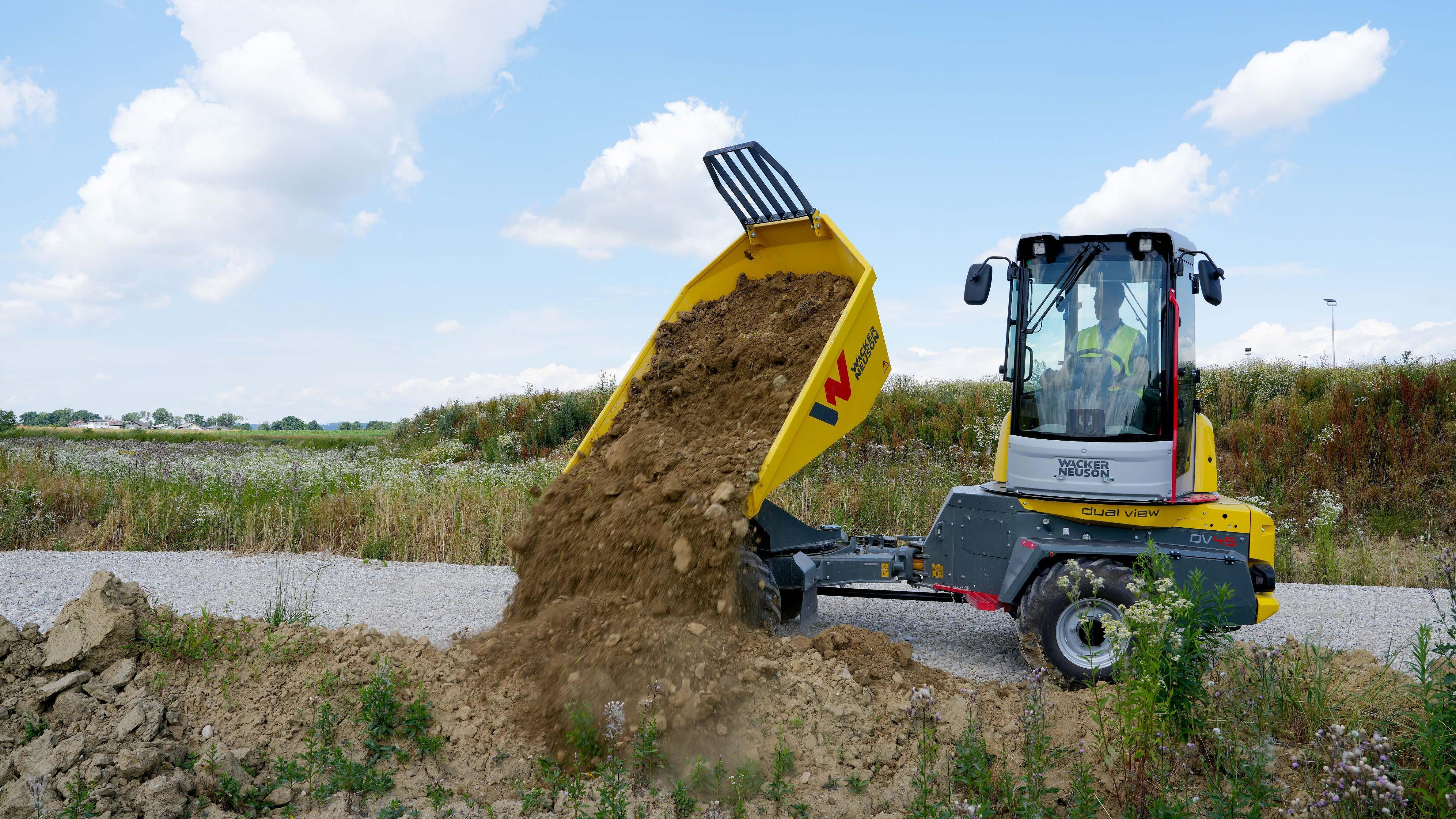 The dumper models DW20, DW30, DW40, DW60, and DW90 have been completely revised and are now even safer. New features, like the camera washing system for the front and rear cameras, seatbelt monitoring including the start release, skip and tilt monitoring, as well as the hill-hold and auto-stop functions, are now available for wheel dumpers with a payload between two and nine tons. Object monitoring "Active Sense Control" will also be available as an option for dumpers by Wacker Neuson from the end of the year: Where there is danger of a collision, it automatically lowers the speed of the dumper, even bringing it to a stop. The system automatically calculates the route combined with the speed and immediately takes effect when an obstacle arises on the collision course. The system can be muted for parking assist functions, unloading or loading, as well as the operation of trailers, it is therefore overridden.