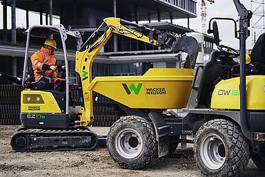 De beproefde wieldumpers DW60 en DW90 met een laadvermogen van 6000 en 9000 kilo zijn de grootste wieldumpers uit het assortiment van Wacker Neuson. Deze machines hebben een flinke make-over ondergaan en beschikken nu over een dieselmotor die aan emissienorm fase V voldoet en milieuvriendelijk is, zonder dat dit ten koste van de productiviteit gaat. De standaard Auto-Stop-functie schakelt de machine automatisch uit als deze vijf minuten niet gebruikt wordt. Het grote, multifunctionele 7" display biedt een uitstekend overzicht van alle functies van de machine en toont de beelden van de frontcamera en de achteruitrijcamera. De motorkap uit één stuk vergemakkelijkt de toegang voor onderhoud en maakt dagelijkse controles, service en onderhoud eenvoudig en tijdbesparend.